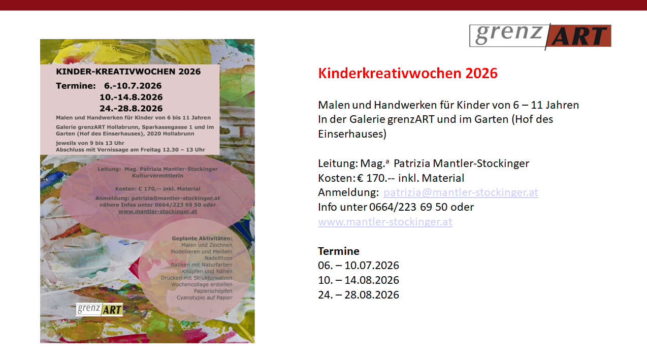 - Kinderkreativwochen 2026 mit Maga Patrizia Mantler-Stockinger, Kulturvermittlerin